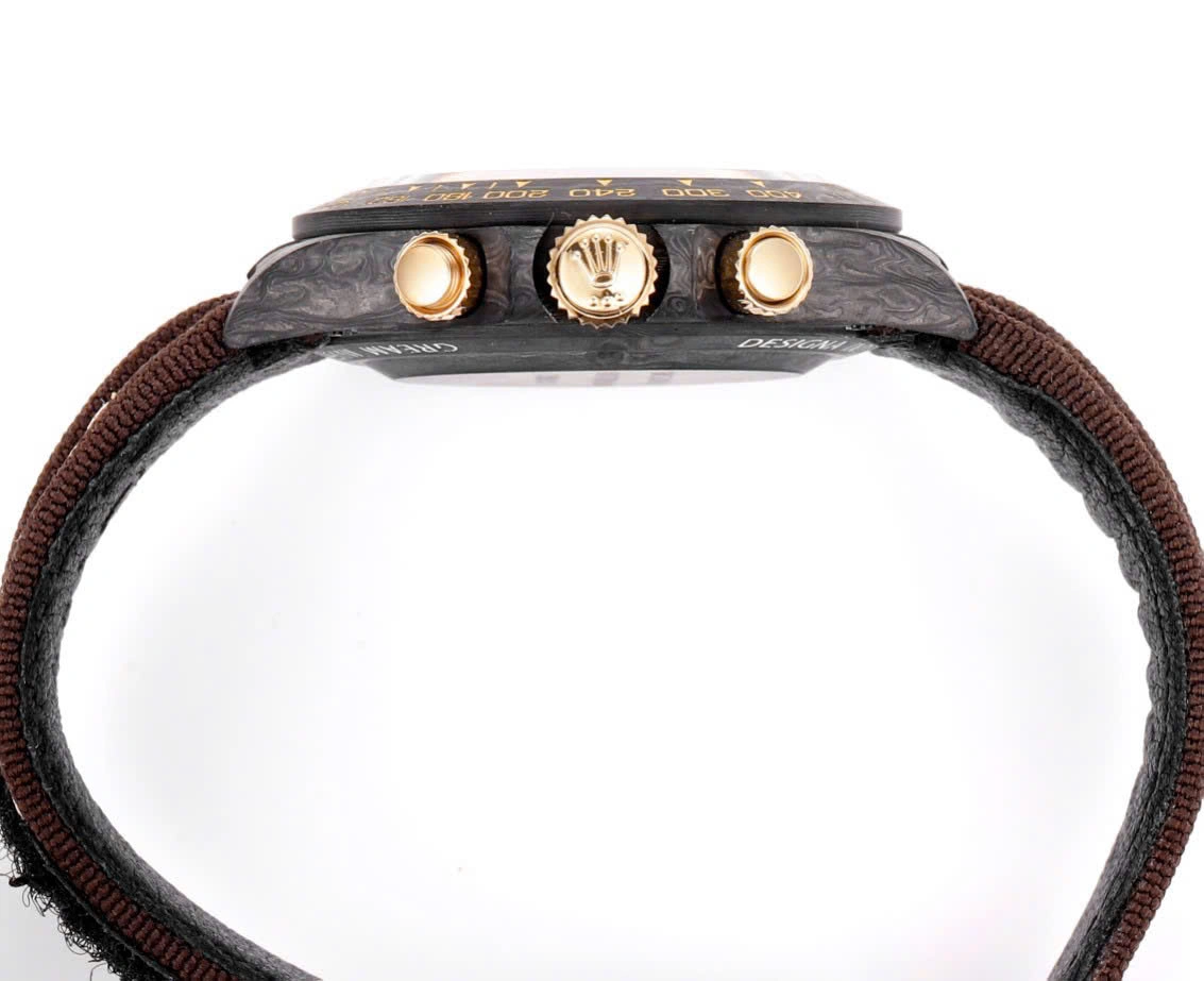 | Please Note: This is a Custom Made Rolex Daytona Super Clone made of Real forged Carbon Fiber. The use of Carbon case makes this watch the lightest Daytona ever produced | |