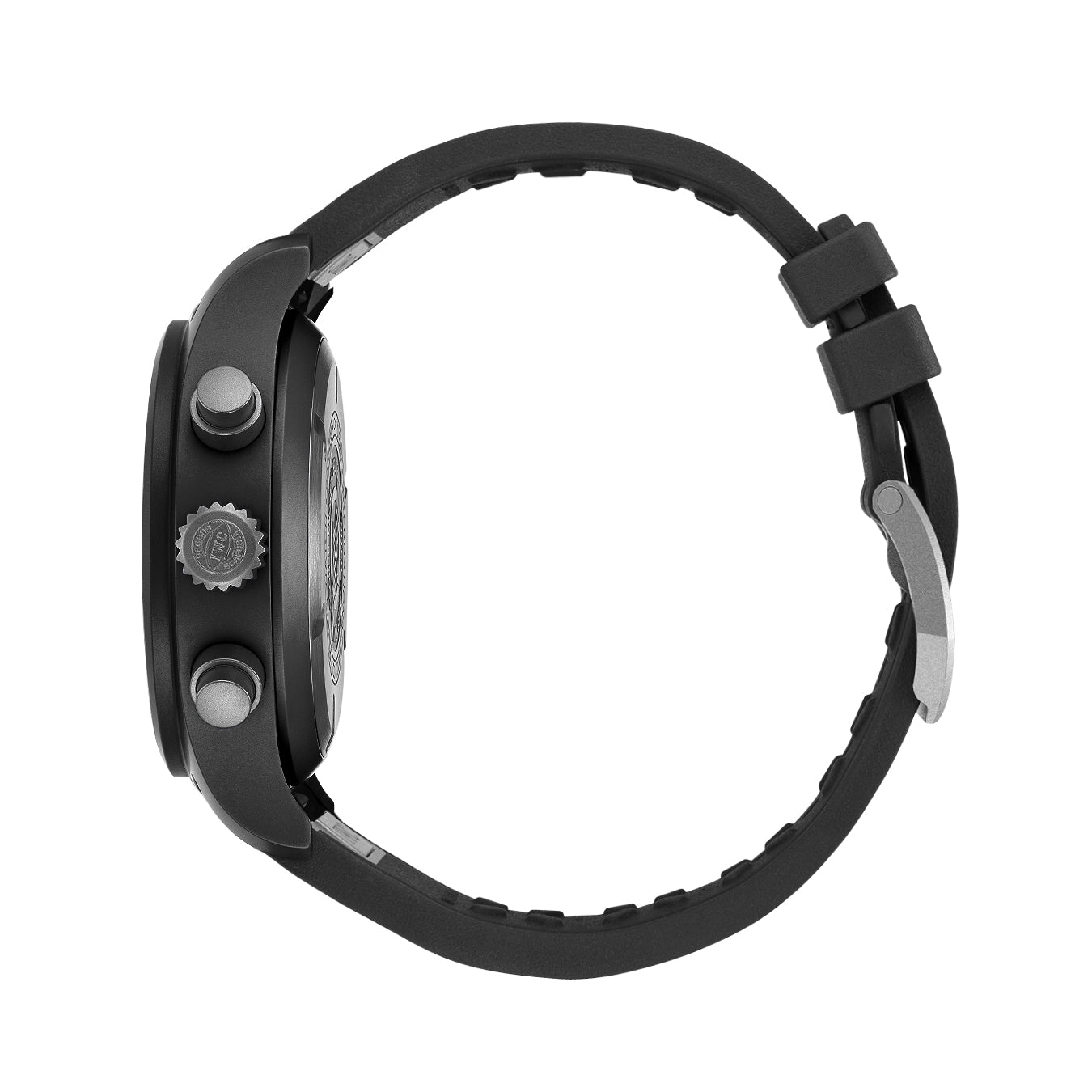 Highlights: The IWC Pilot's Watch Chronograph 41 TOP GUN (IW389401) combines a “Jet Black” ceramic case in an ergonomic 41mm size with a black dial and a black rubber strap. The crown and pushers are made of titanium. A titanium case back complements the sleek and sporty chronograph design. The timepiece is powered by the IWC-manufactured 69380 caliber. The robust and precise chronograph movement in classic column-wheel design is housed in a soft-iron inner case to protect it from the effects of magnetic fields. The versatile sports watch offers a water resistance of 10 bar and is equipped with the IWC EasX-CHANGE® system, which makes it possible to exchange the strap quickly and easily without needing additional tools.