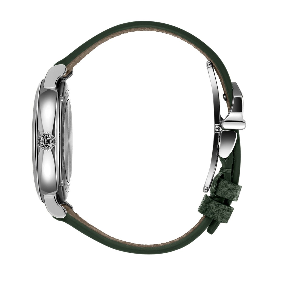 Highlights: Rhodium-plated hour markers, Roman numerals at 6 and 12 o’clock, and slender feuille hands provide a delightful contrast to the rich green dial, on which twelve bright white diamonds mark the hours. This casually elegant ladies’ watch is fitted with a green calfskin strap with a butterfly clasp. Thanks to the integrated quick-change system, the strap can be changed in no time, allowing the timepiece to be adapted to different outfits or situations.