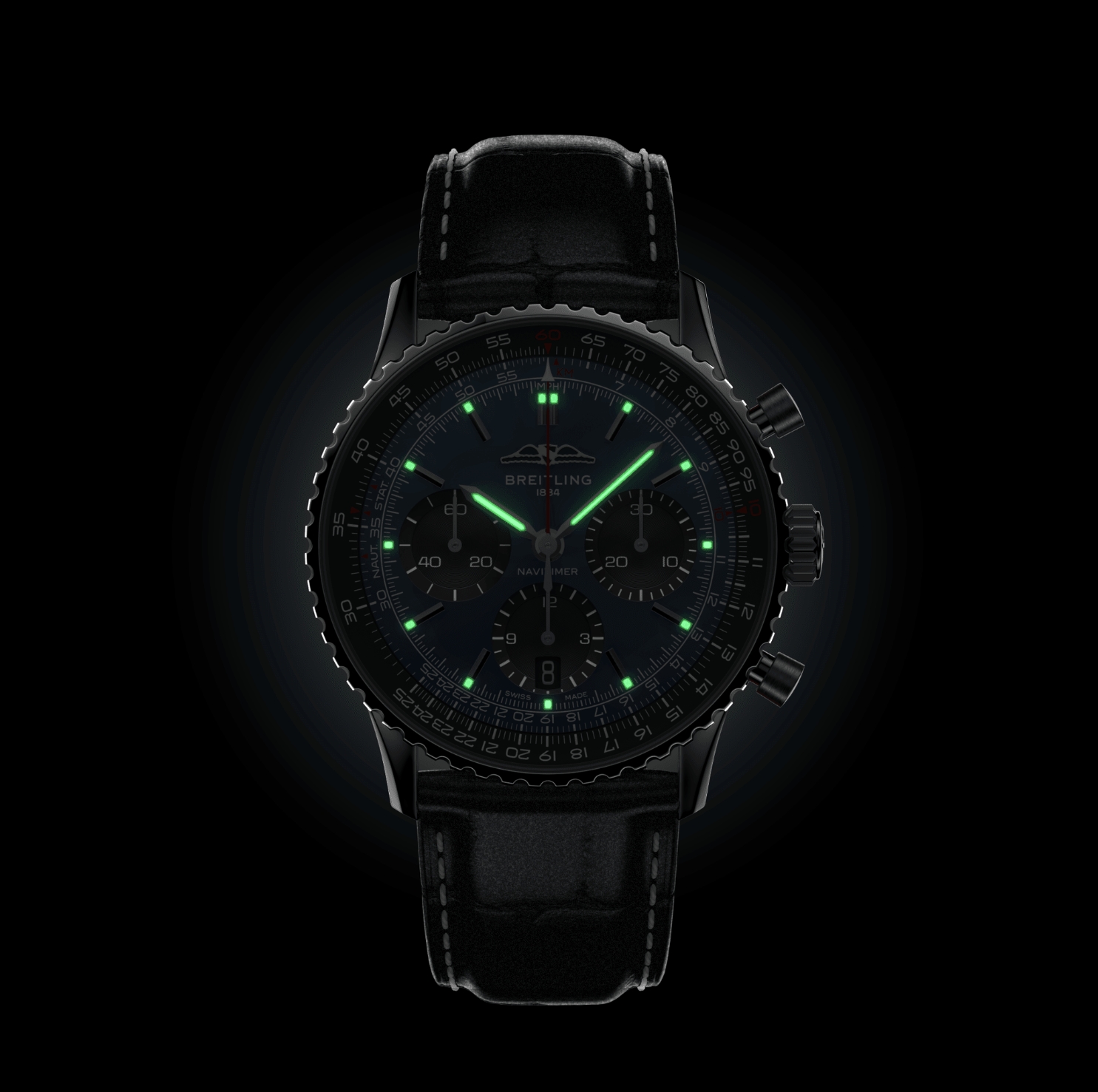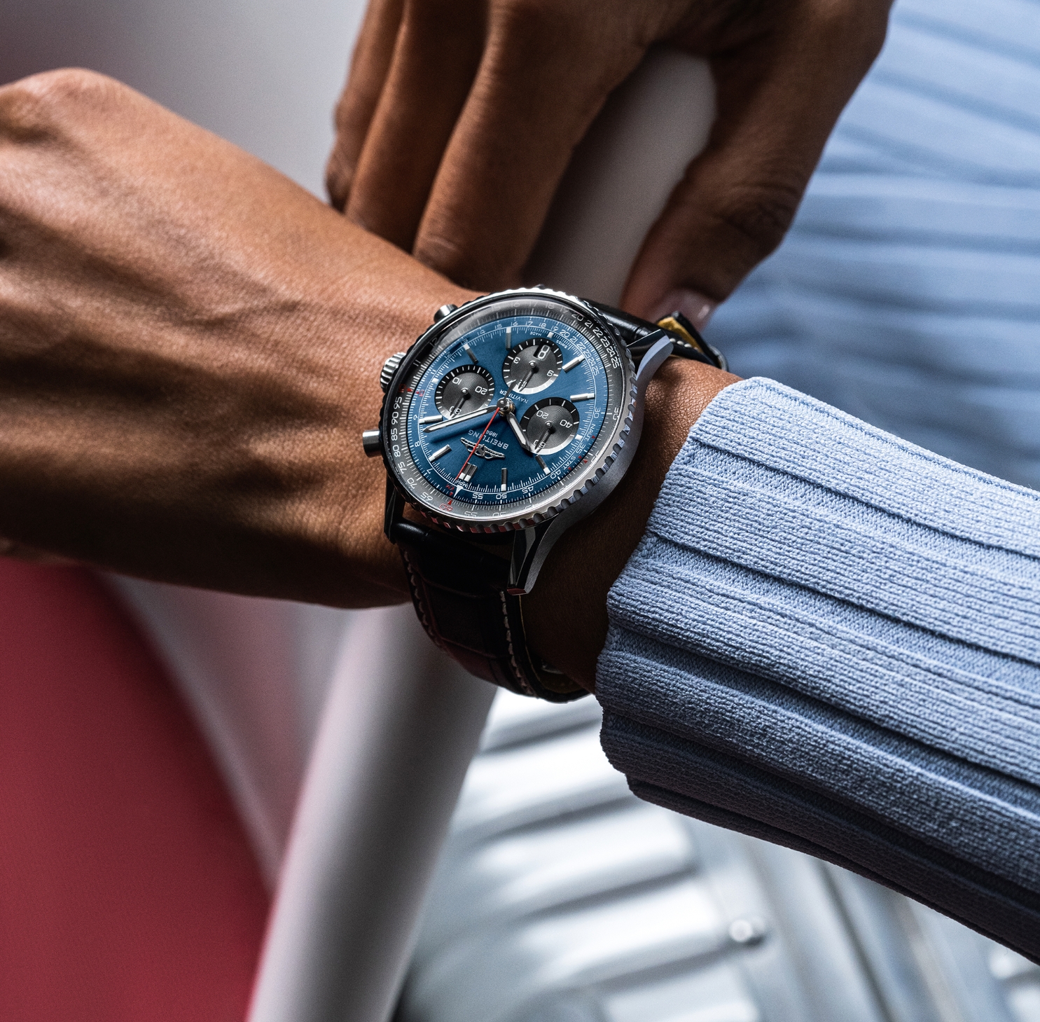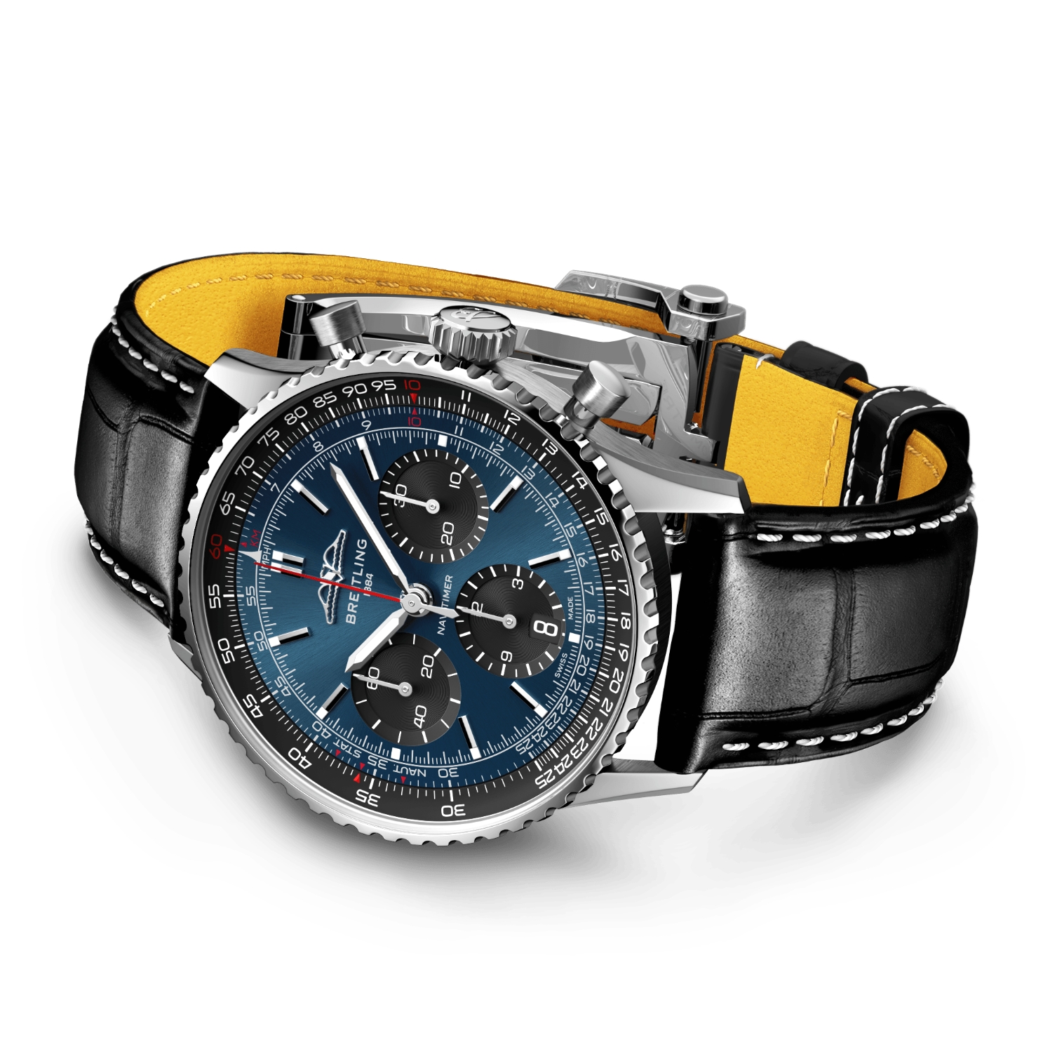 Breitling’s iconic pilot’s chronograph – for the journey. In 1952, Willy Breitling developed a wrist-worn chronograph with a circular slide rule that would allow pilots to perform all necessary flight calculations. Two years later, the Aircraft Owners and Pilots Association (AOPA) announced the design as its official timepiece. The “navigation timer” – or Navitimer – was born. The AOPA was (and remains) the largest pilots’ club in the world, counting nearly every US aviator among its ranks. As the defacto pilot’s watch throughout the glory days of civil aviation, the Navitimer was worn by airline captains and aircraft enthusiasts. It even made its way into space on the wrist of astronaut Scott Carpenter in 1962. And it wasn’t only pilots drawn to the watch’s irrepressible aesthetic. Celebrities of the day such as Miles Davis and Serge Gainsbourg were devotees, proving that the Navitimer had style as well as function. There have been many iterations of Breitling’s icon since its debut 70 years ago, but this new Navitimer captures its most classic features, while enhancing them with modern refinements. A flattened slide rule and a domed crystal create the illusion of a sleeker profile. Alternating polished and brushed metal elements give a lustrous, yet understated finish. Most notably, new colors in shades of blue, green and copper, define the updated dial options. And if there is one update sure to spark nostalgia, it’s the return of the AOPA wings to their original position at 12 o’clock. For 70 years, Breitling’s original pilot’s watch has been beloved by aviators and tastemakers in equal measure. Worn by astronauts in space and the biggest stars on earth, it is Breitling’s most iconic timepiece and one of the most recognizable watches of all time.