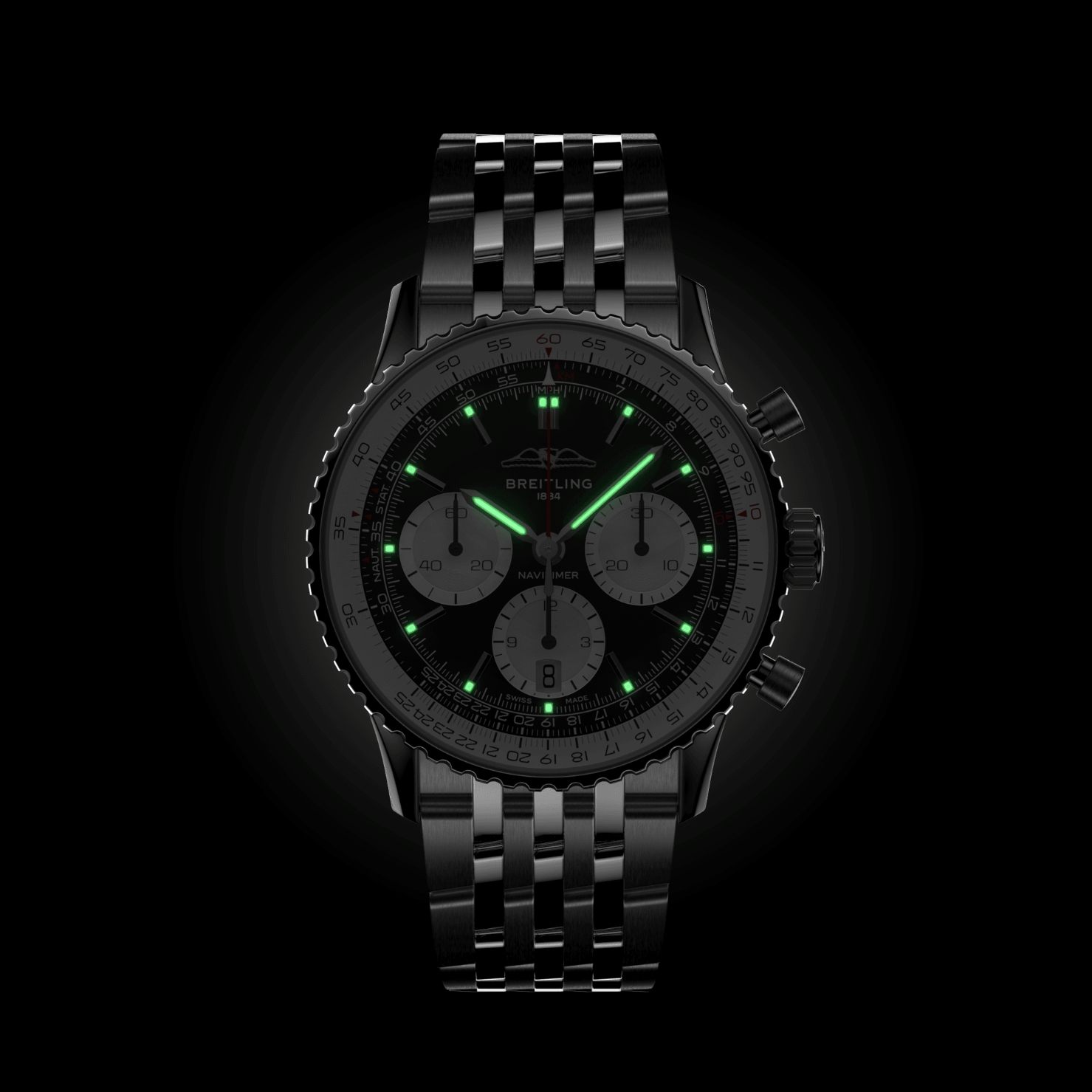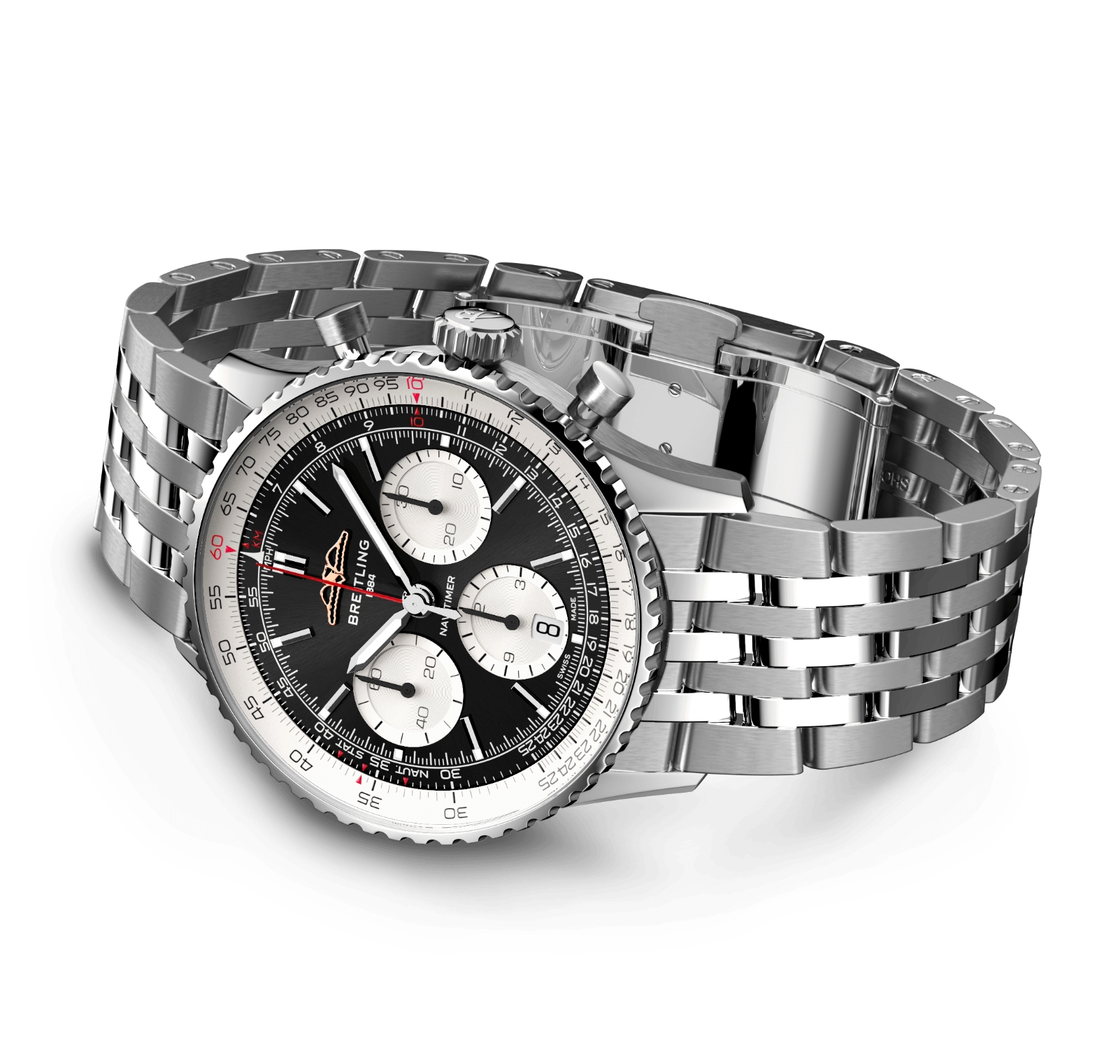 Breitling’s iconic pilot’s chronograph – for the journey. In 1952, Willy Breitling developed a wrist-worn chronograph with a circular slide rule that would allow pilots to perform all necessary flight calculations. Two years later, the Aircraft Owners and Pilots Association (AOPA) announced the design as its official timepiece. The “navigation timer” – or Navitimer – was born. The AOPA was (and remains) the largest pilots’ club in the world, counting nearly every US aviator among its ranks. As the defacto pilot’s watch throughout the glory days of civil aviation, the Navitimer was worn by airline captains and aircraft enthusiasts. It even made its way into space on the wrist of astronaut Scott Carpenter in 1962. And it wasn’t only pilots drawn to the watch’s irrepressible aesthetic. Celebrities of the day such as Miles Davis and Serge Gainsbourg were devotees, proving that the Navitimer had style as well as function. There have been many iterations of Breitling’s icon since its debut 70 years ago, but this new Navitimer captures its most classic features, while enhancing them with modern refinements. A flattened slide rule and a domed crystal create the illusion of a sleeker profile. Alternating polished and brushed metal elements give a lustrous, yet understated finish. Most notably, new colors in shades of blue, green and copper, define the updated dial options. And if there is one update sure to spark nostalgia, it’s the return of the AOPA wings to their original position at 12 o’clock. For 70 years, Breitling’s original pilot’s watch has been beloved by aviators and tastemakers in equal measure. Worn by astronauts in space and the biggest stars on earth, it is Breitling’s most iconic timepiece and one of the most recognizable watches of all time.