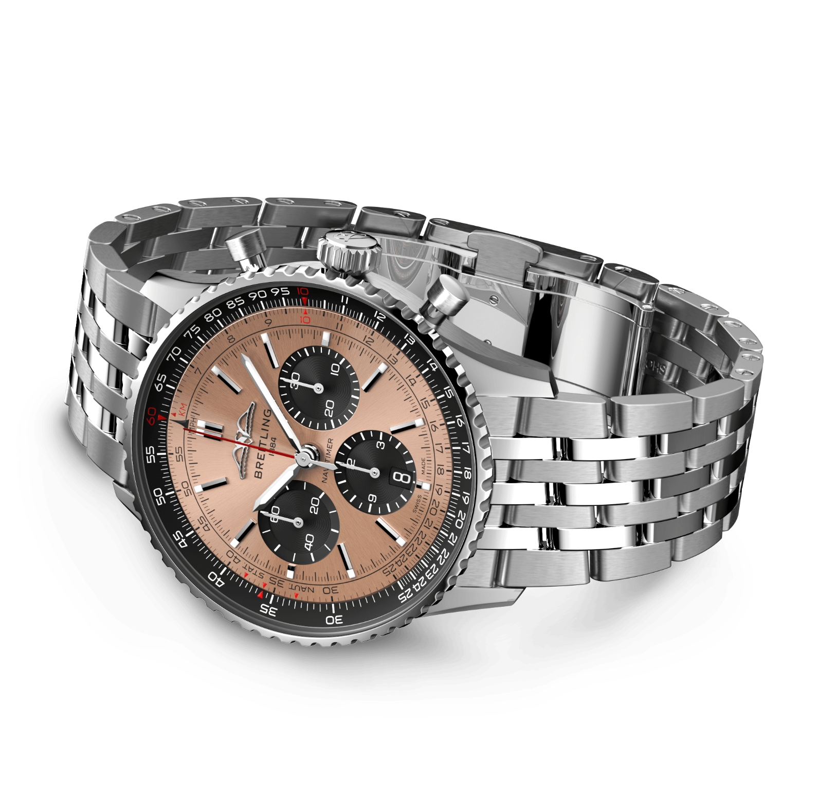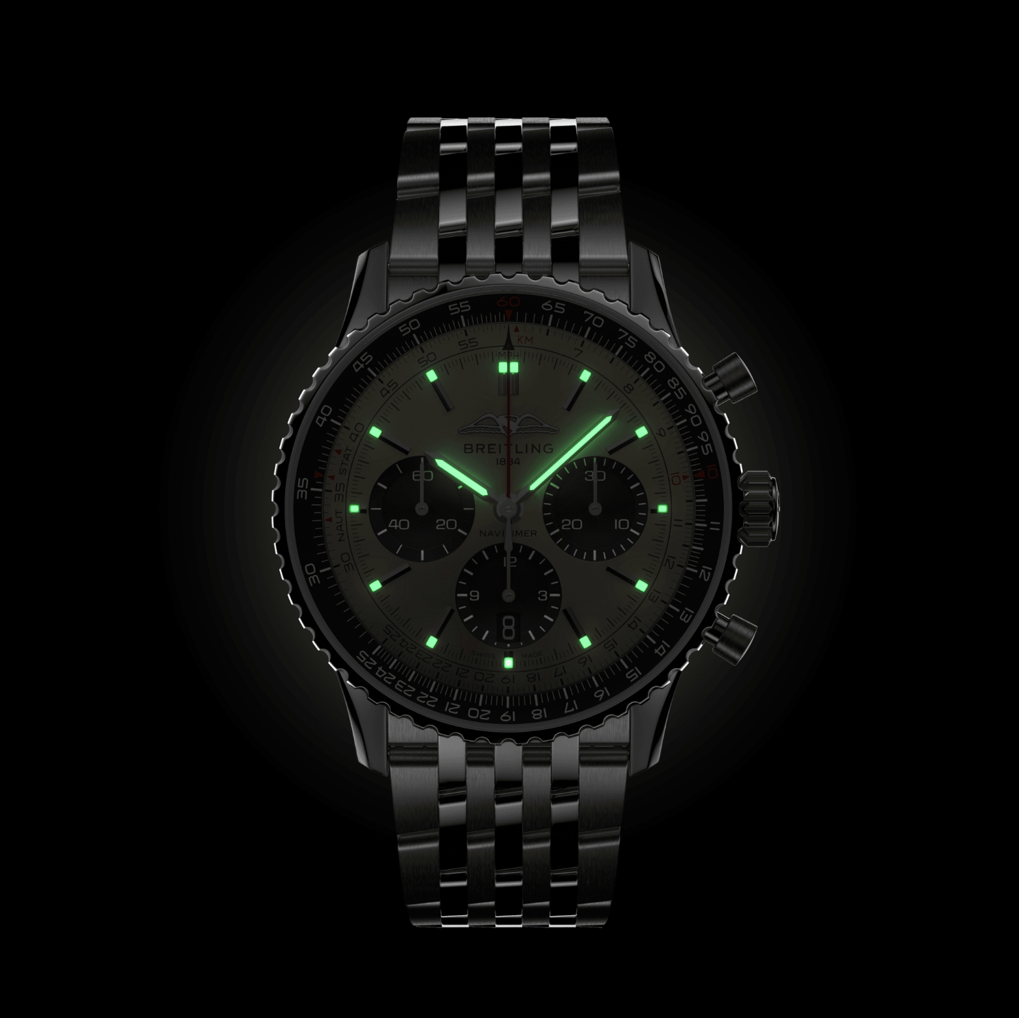 Breitling’s iconic pilot’s chronograph – for the journey. In 1952, Willy Breitling developed a wrist-worn chronograph with a circular slide rule that would allow pilots to perform all necessary flight calculations. Two years later, the Aircraft Owners and Pilots Association (AOPA) announced the design as its official timepiece. The “navigation timer” – or Navitimer – was born. The AOPA was (and remains) the largest pilots’ club in the world, counting nearly every US aviator among its ranks. As the defacto pilot’s watch throughout the glory days of civil aviation, the Navitimer was worn by airline captains and aircraft enthusiasts. It even made its way into space on the wrist of astronaut Scott Carpenter in 1962. And it wasn’t only pilots drawn to the watch’s irrepressible aesthetic. Celebrities of the day such as Miles Davis and Serge Gainsbourg were devotees, proving that the Navitimer had style as well as function. There have been many iterations of Breitling’s icon since its debut 70 years ago, but this new Navitimer captures its most classic features, while enhancing them with modern refinements. A flattened slide rule and a domed crystal create the illusion of a sleeker profile. Alternating polished and brushed metal elements give a lustrous, yet understated finish. Most notably, new colors in shades of blue, green and copper, define the updated dial options. And if there is one update sure to spark nostalgia, it’s the return of the AOPA wings to their original position at 12 o’clock. For 70 years, Breitling’s original pilot’s watch has been beloved by aviators and tastemakers in equal measure. Worn by astronauts in space and the biggest stars on earth, it is Breitling’s most iconic timepiece and one of the most recognizable watches of all time.